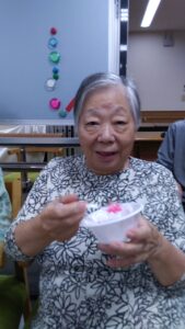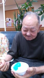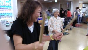 お隣養護老人ホーム 夏祭りにお邪魔しました 2025.09.22 8/19 お隣の養護老人ホームの夏祭りにお邪魔させていただきました。 縁日のかき氷を食べて、汗の引いたところで一踊り。東京音頭, 炭坑節 他 また飛び入りで太鼓を叩き、大変盛り上がりました。 前のお知らせ