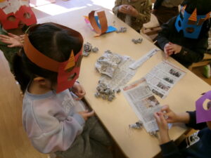 今日は節分です👹 2026.02.03 今日は2月3日節分です 園内ではクラスで それぞれ豆まきをしました 乳児クラスは豆→ボールで。幼児クラスは新聞紙を丸めた豆をいっぱい作りました みんな大きな声で「おには~そと!ふくは~うち!」上手に豆まきできました☆ 前のお知らせ