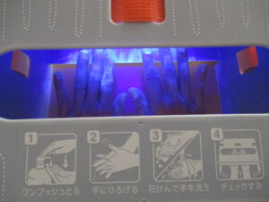 ・手洗いチェッカーに手を入れて観察します。