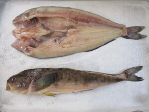 本物の魚(ほっけの開き)を見て、「このおさかな、みたことある!」「おうちでたべたことあるよ!」と、興味いっぱいの子どもたち♪